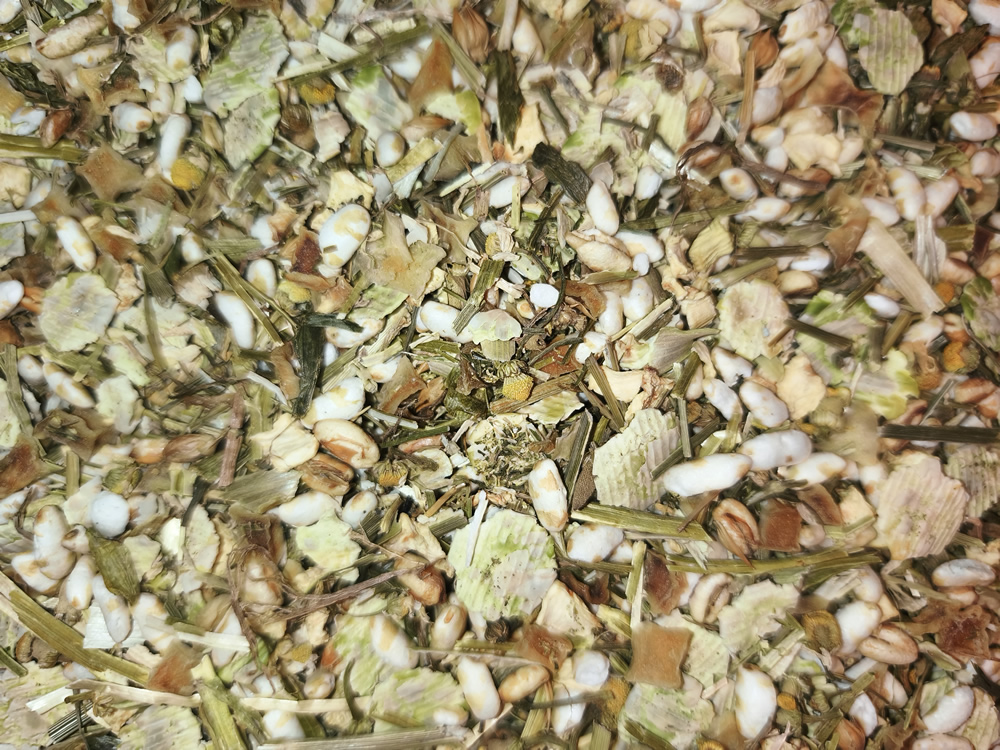 Zusammensetzung: Kartoffel, Reis, Erbse, Kamille, Petersilie, Sellerieknolle, Möhrenstücke, Luzerne, Dill