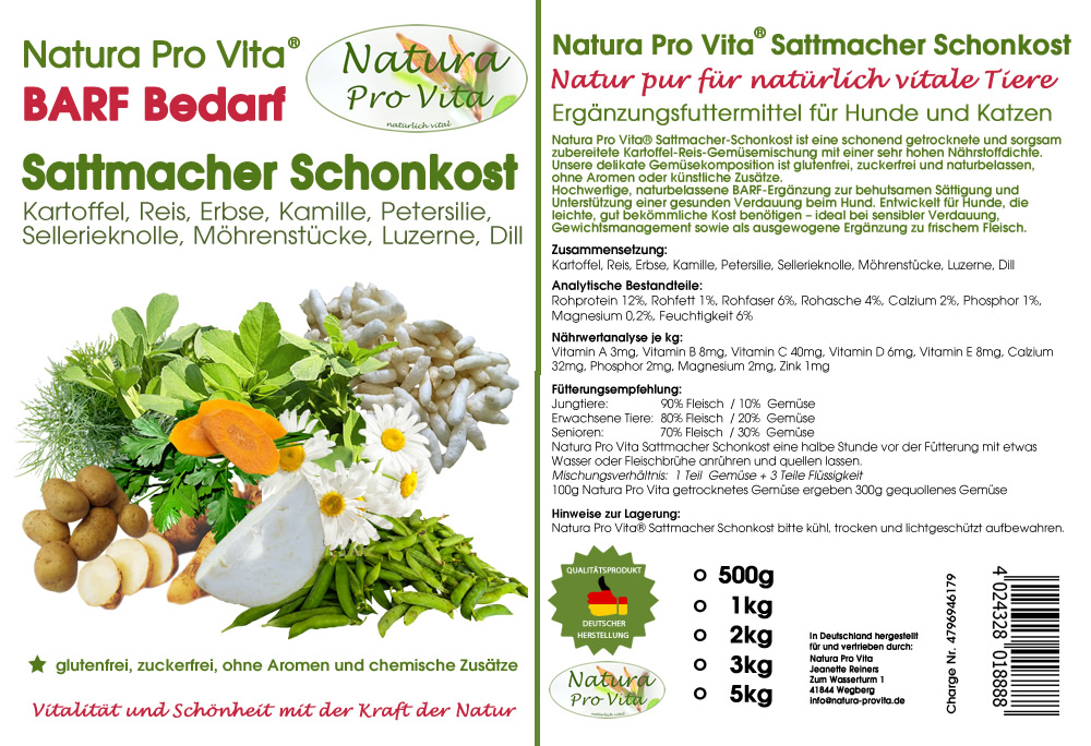 Natura Pro Vita Sattmacher Schonkost – Natürliche BARF - Ergänzung für empfindliche Hunde